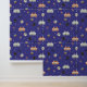 Cute circus pattern wallpaper with circus tents, unicycles, toys and funny hats on blue background. The perfect wallpaper for nurseries or any other kids room.