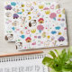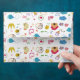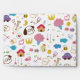 This cute kids doodle pattern design is a playful and charming design featuring a collection of adorable doodles. Elements such as clouds, chicks, snails, a house, a car, a guitar, bread, a bee, a butterfly, and ice-cream adds to the whimsical and childlike feel of the design.