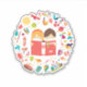 Cute children library reading sticker design. Vintage cartoon children's art. Cute and fun