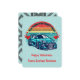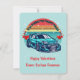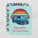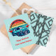 If you modify the size or transfer the design, adjust the image accordingly. This charming illustration features a retro, colorful sun decorated with red hearts and a stylish car, paired with the phrase "You make my heart race." You can customize the "Happy Valentine's" message and include your child's name. The back showcases a playful pattern of tire marks, making this card a fun choice for boys to share with classmates, teachers, friends, and family.