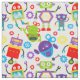 A bright and colourful cartoon robot design fabric. The robots are designed fairly large to make them perfect for quilting - these would be a great addition to a eye spy or fussy cut quilt.