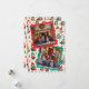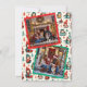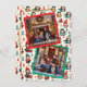 An adorable Christmas card with a warm cosy vintage vibe. It is a two photos template. You can upload your holiday family portrait in the personalise area. The background is cute children on sleds in red and green.