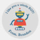 A cute robot valentine's day sticker for kids. It features a whimsical, robot with the words, "I like you a whole bot". Cute accent for kids classroom valentine treat bags or Valentines Day cards for friends. Personalise it with any greeting and name of your choice. Designed for you by Blackberry Boulevard.