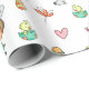Cute wrapping paper for spring birthdays, baby showers and Easter. The pattern is very colourful and it has a lot of tiny cartoons featuring girls and boys with bunny ears, easter eggs, baskets, little chicks, hearts, flowers in beautiful coordinated colours. Illustrated and designed by Patricia Alvarez.