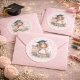 A bright and joyful illustration featuring a young graduate in front of a pink school bus, framed by white daisies on a pale pink backdrop. The artwork blends innocence, celebration, and soft pastel charm.