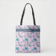 Cute Kingfisher Birds Floral Pattern Pink Name Tote Bag