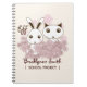 The product design features adorable bunny and kitten holding pink flowers. This pretty animal cartoon makes cute and unique notebooks with personalized text for school.