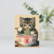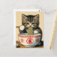 Cute Kitten Eating Ramen Woodblock Print Postcard