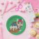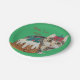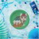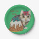 This customisable christmas plate has a picture of a cute Christmas kitten wearing a very pretty red bow with christmas holly on her head and she's looking very pleased with herself as she licks the Christmas pudding cream from her paws with her little pink tongue. Her big pussycat eyes show how much she's enjoying her special christmas treat. This cute little Christmas cat looks very festive on this paper christmas plate. This is a customisable christmas paper plate so that you can personalise it with your own text. The original art for this cute christmas kitten is a water-colour illustration.