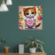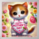 Adorable kitten holding a heart-shaped Happy Mother's Day card amid bright floral decoration. A perfect image conveying love, appreciation, and celebration for the special people in our lives.