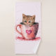 Cute Kitten in a Teacup with Hearts Bath Towel