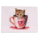 Gift bag with a cute little kitten. Sitting in a teacup looking positively adorable. One little paw hangs on the brim. Hearts swirl all around. Sweet and whimsical.
