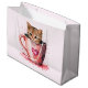 Cute Kitten in a Teacup with Hearts Large Gift Bag