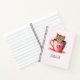 Spiral notebook with a cute little kitten. Sitting in a teacup looking positively adorable. One little paw hangs on the brim. Hearts swirl all around. Sweet and whimsical.