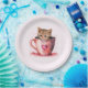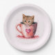 Cute Kitten in a Teacup with Hearts Paper Plate