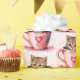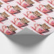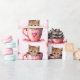 Wrapping paper with a cute little kitten. Sitting in a teacup looking positively adorable. One little paw hangs on the brim. Hearts swirl all around. Sweet and whimsical.