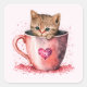 Cute Kitten in a Teacup with Hearts Square Sticker
