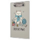 Embrace your creative side with this delightful clipboard showcasing a cute kitten passionately knitting. Surrounded by balls of yarn, knitting needles, and a painter's palette, this design is perfect for hobbyists and art lovers. The gentle gray hue of the clipboard provides a neutral backdrop for the vibrant illustration, ensuring it stands out. Ideal for journaling, creative writing, or simply keeping your important papers tidy, this accessory adds a touch of playful charm to any desk. Let this sweet kitten inspire your next creative endeavor and bring a smile to your day.