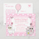 Sweet hand drawn cartoon kitty cat, mouse and llama pink and white polka dots bows girl's birthday party invitations.
