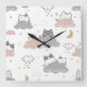 Cute Kitten Pattern White Square Wall Clock