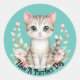 Adorable picture of a cute kitten with flowers, is featured on this round sticker. With message, "Have A Purrfect Day", this makes a great sticker to use for special mailings, scrap booking and more!