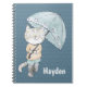 Cute Kitten with Umbrella in Rain Art Personalised Notebook