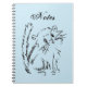 A fun colourful back to school spiral notebook featuring an original line drawing cartoon of an adorable kitty! Light blue background.