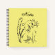 A fun colourful back to school square spiral notebook featuring an original line drawing cartoon of an adorable kitty! Bright yellow background.