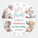 Cute Kitty Cat 1st Birthday Party Classic Round Sticker