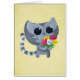 Grey Cat with Cute Flowers. One more cute and adorable kawaii illustrated grey cat. Perfect kitten with cute big round black eyes is holding adorable kawaii flowers (cute tulips). Just sweet! Cat illustration by Madame Colonelle