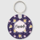 A key chain with an adorable pattern featuring kitty cat astronauts floating in space. Fun and whimsical.