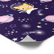 Poster with an adorable pattern featuring kitty cat astronauts floating in space. Fun and whimsical.