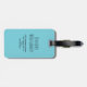 A luggage tag with a cute cat pattern, set on a blue background and decorated with rainbows and paw prints and more.