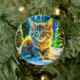Cute Kitty Cat Playing Outside on Christmas Eve Ceramic Tree Decoration