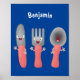 Enjoy dinner with these happy eating utensils! Features knife, fork and spoon in fun cartoon cutlery style.