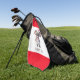 This cute personalised golf towel for nurses features a cute koala bear dressed as a nurse wearing a red stethoscope on a white background with red borders. Perfect for a nurse or nursing school graduate. Image generated with AI.