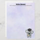 Letterhead personalised with a name and address on a soft purple digital watercolor background. A cute koala eating eucalytpus and wearing a black graduation cap.