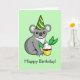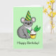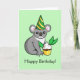 Celebrate your birthday in true Aussie fashion with this adorable koala in a green and gold party hat. He even has a little birthday cupcake made with eucalyptus leaves!