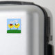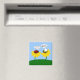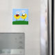 On this cute magnet an annoyed bumble bee sits on a yellow flower and asks, "Why are you bugging me, lady?" to which the smitten ladybug sitting on another flower responds, "Bee-cause you're cute". From my original digitally-created image.