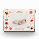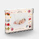 Whimsical and sweet newborn keepsake photo block featuring hand drawn illustration of pink and red ladybugs with wildflowers. You can add your baby's photo with birth stats information. Works best with a horizontal photo.