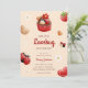 Baby shower invitation featuring cute lovebug, cupcake, flower and strawberry illustrations all in a red, white and light brown colour scheme. Paired with the illustrations are a playful script font and an elegant sans serif in which all you personalised information is written. Check out our store for more items from this collection.