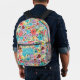 Super fun backpack featuring a floral ladybug pattern and your custom name. Add an extra bonus line of text - phone number, team name, saying, etc. - or delete. Roomy enough for books, computer, sports gear and more - or use as a travel or sleepover bag too. Cool and colourful, yet very functional - win, win.