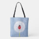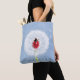 CUTE LADYBUG INSECT ON WHITE DANDELION FLOWER WITH BLUE BACKGROUND. LADYBUG CAN BE REMOVED IN EDITOR. Personalise with your name.