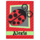 Cool, colourful kid's ladybug, green, red lady bug theme design on Scarlet Red Stripes pattern. Perfect gift for baby, toddler, kids, children, teens, or adults! Personalised the design template by adding a child's name or custom text. Visit our store, Birthday Party House, for more great customisable girly girl products!