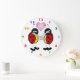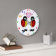 A fun white Wall Clock for children, with multicolored numerals, and an illustration of two cute ladybirds, and a heart. A perfect gift for the expecting mother, the toddlers room, or a nice present to take to the baby shower. Available also in square. Visit our store for more Kids Wall Clocks and other articles.