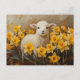 Cute Lamb with Yellow Daffodils Painting Postcard