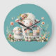 Cute Lambs with Floral and Patchwork Accents Large Clock