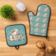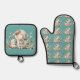Cute Lambs with Floral and Patchwork Accents Oven Mitt & Pot Holder Set