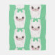 Pattern design with just the head of a llama. Cute, white llama with long lashes and a sweet smile. Light green background. Unique for sure! Art and design by Mira