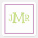 Cute Lavender & Green Monogram Initials square Square Sticker